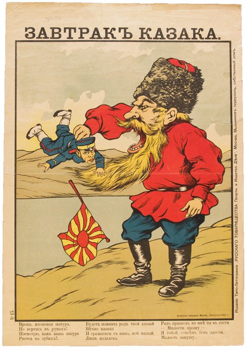 Примечательно, что образы, вышедшие из-под пера еврейского классика, вполне вписывались в сатирический диалог, который вели тогда между собой японцы и русские. На японских открытках и плакатах Россия представлялась в виде огромного, жестокого и глупого казака, противостоящего маленькому, сообразительному и элегантному японскому солдату. Та же разница в масштабах освещалась русскими с другой перспективы: на многочисленных лубочных картинках мощный русский солдат одним ударом валил множество маленьких жукообразных японцев или отрубал им носы, которые они сунули не в свое дело.
